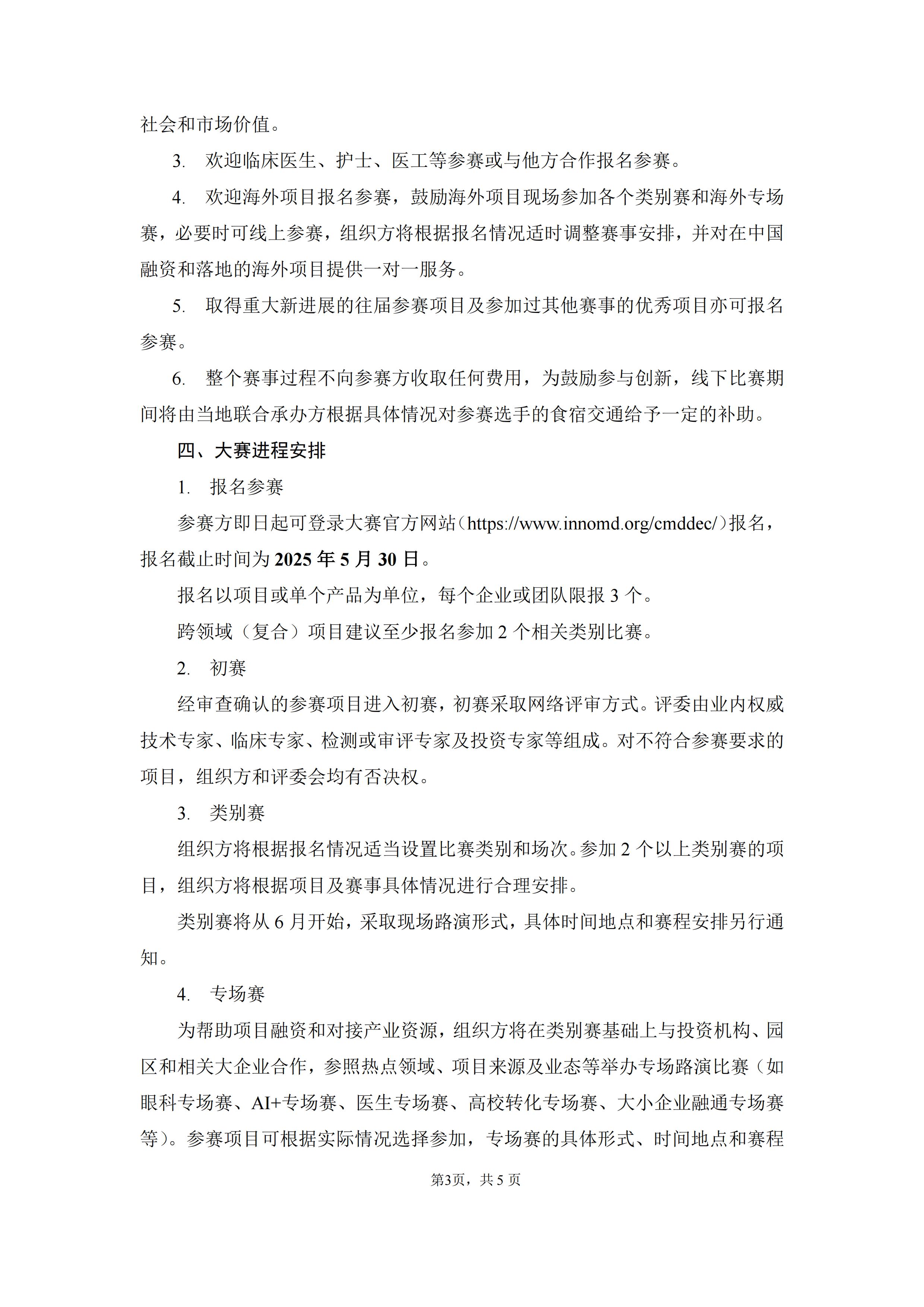 参赛方即日起可登录大赛官方网站(医疗器械创新网网://hebeihonghu.com/cmddec/)报名,报名截止时间为2025年5月30日。